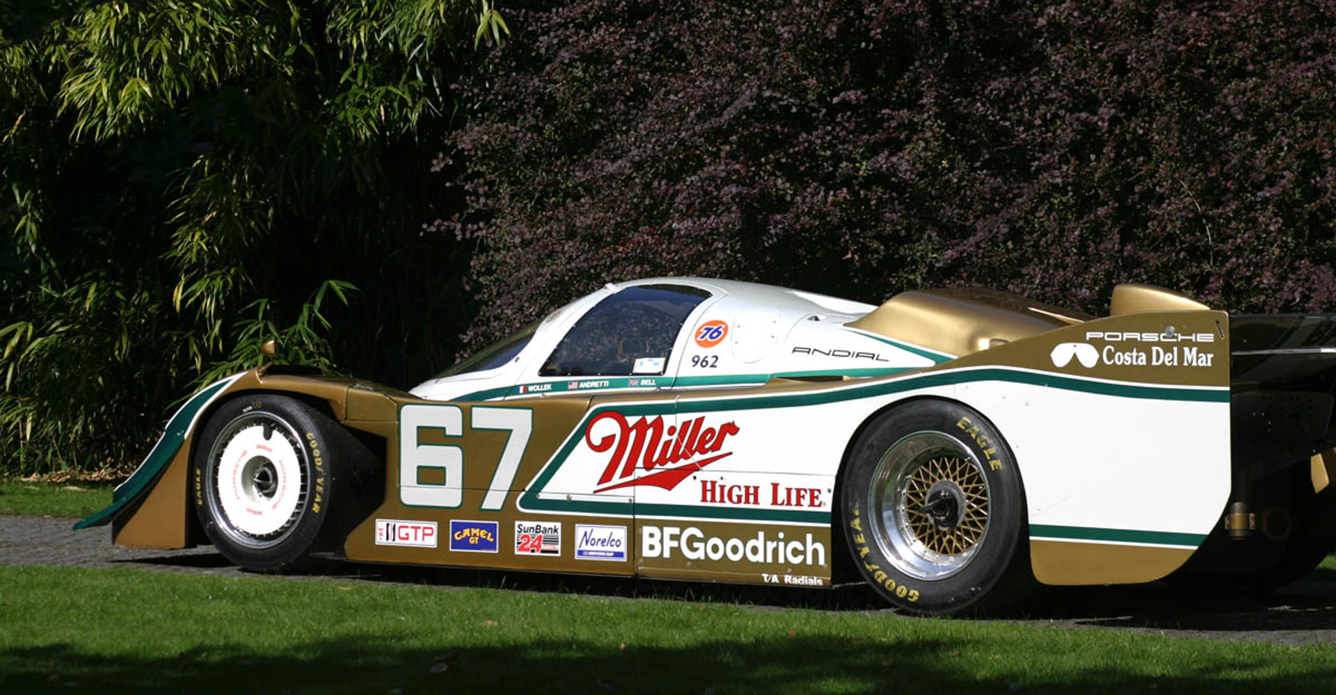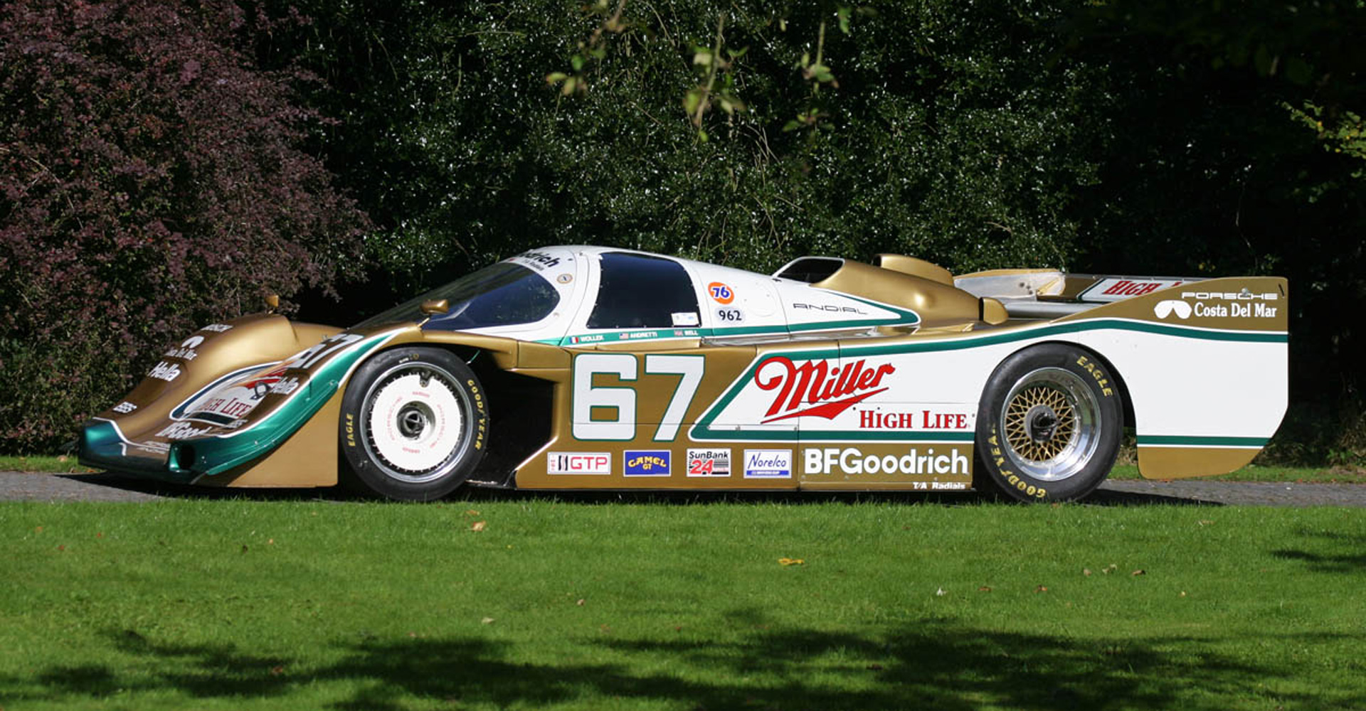 Shell Dunlop 962c water/water hotrod (Stuck), sent by factory-Lime Rock test-Wollek 1.75 secs quicker there than the 962c. Elkhart Lake 2.5 seconds quicker than 962c. Tire test W. Glen test Busby- back to back test 108 – 3 seconds quicker on BF Goodrich tyres than Bridgestone tyres. Fastest 962 built.